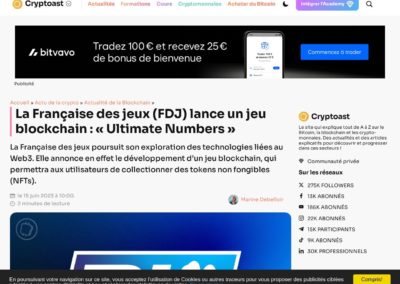 Le web3 fait référence à la prochaine génération de l’Internet, visant à le rendre plus décentralisé et plus intelligent. Il se concentre sur la mise en œuvre de la technologie blockchain pour créer des applications décentralisées (dApps) permettant aux utilisateurs de contrôler leurs données et d’interagir entre eux sans l’intermédiaire d’entités centralisées. Ces utilisateurs peuvent se rencontrer dans des mondes virtuels ou Metaverse, matérialisés par des plateformes, principalement de jeu vidéo ou d’interaction sociale en 3D, dans lesquelles évoluent des avatars. Ces plateformes se distinguent notamment par la liberté offerte à leurs utilisateurs en matière de propriété numérique sur leurs actifs virtuels créés sous forme d’objet (NFT), d’architecture ou de skin.